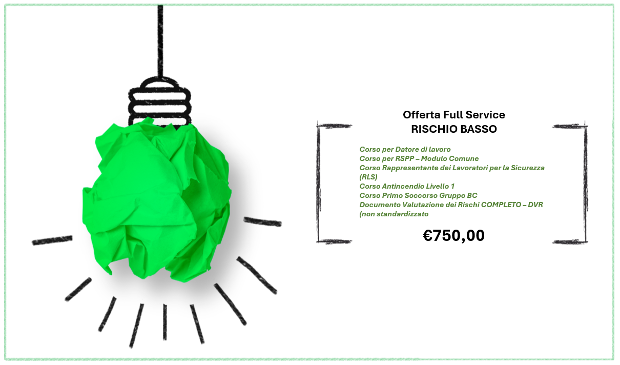 + un CORSO PER LAVORATORI A RISCHIO BASSO in OMAGGIO dal VALORE DI €40,00 oltre iva